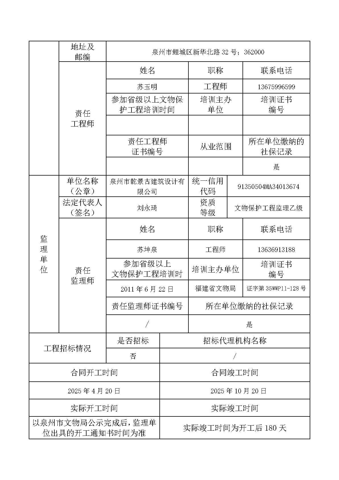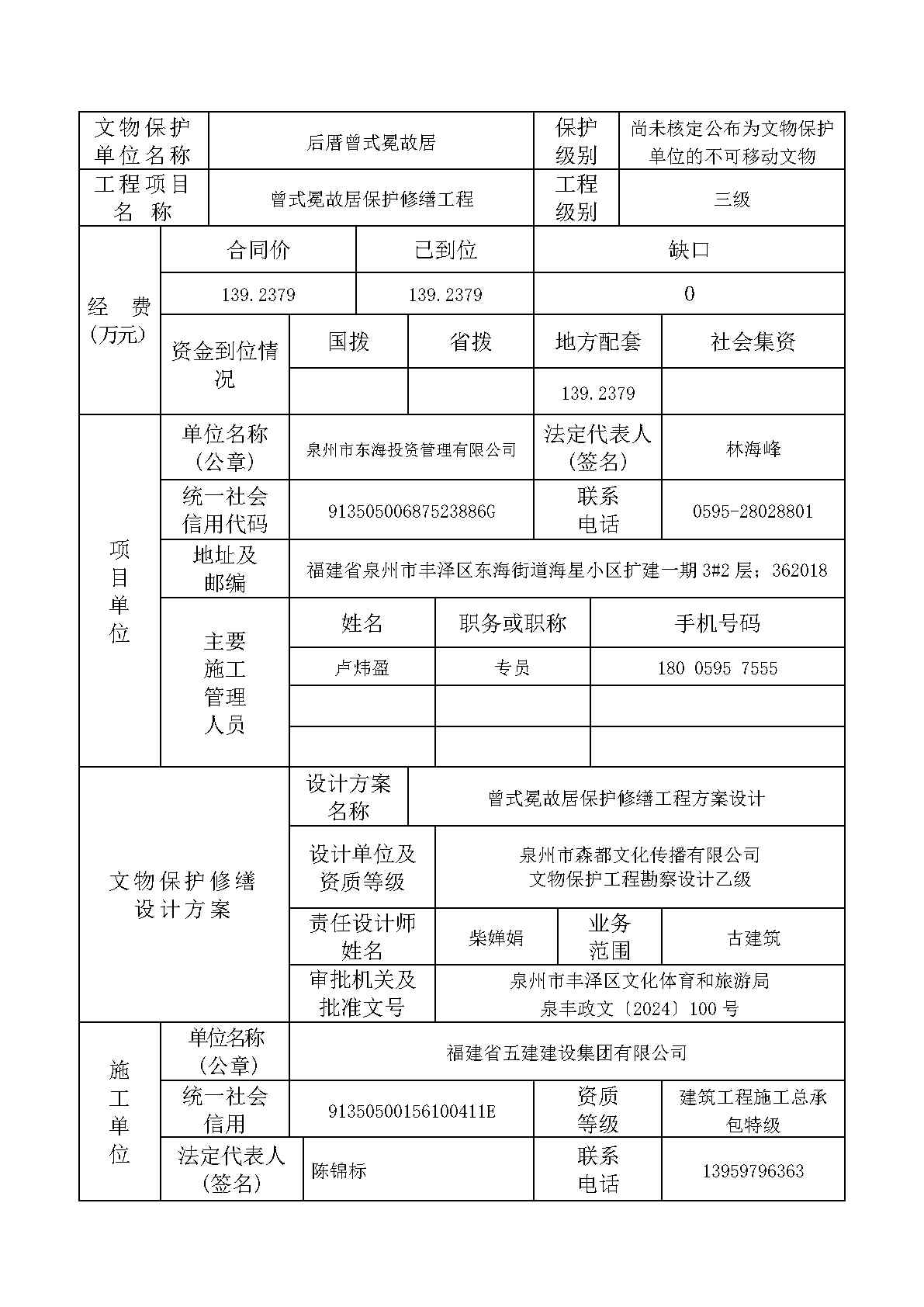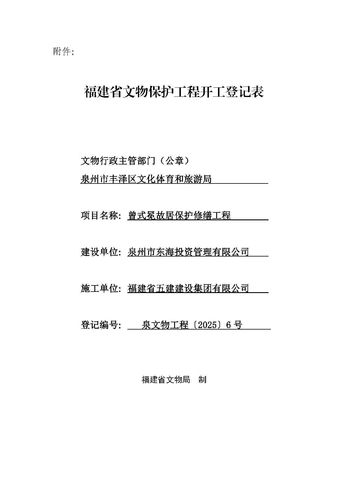 曾式冕故居保护修缮工程开工登记表